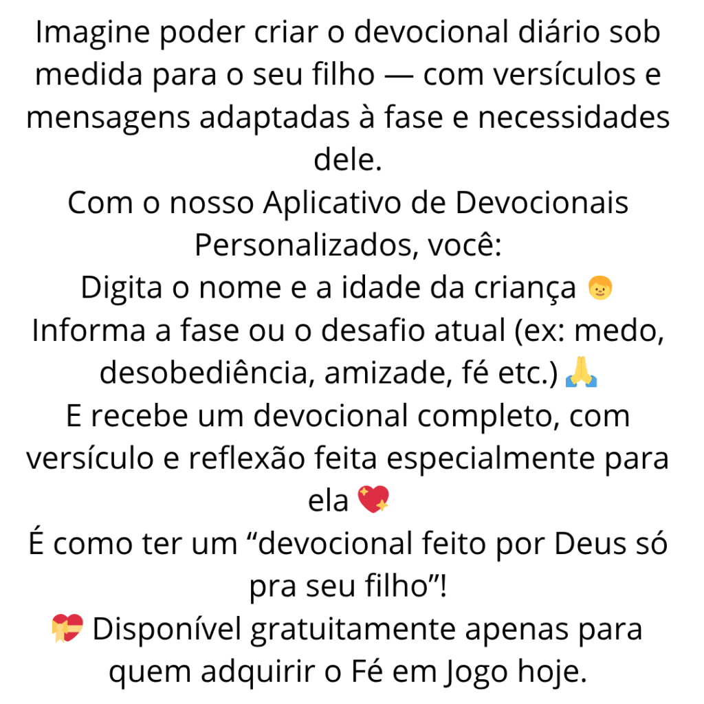 Mas imagine se, em vez de brigas para prestar atenção, as crianças pedissem pra aprender sobre Deus brincando?Com o Fé em Jogo, isso é exatamente o que acontece