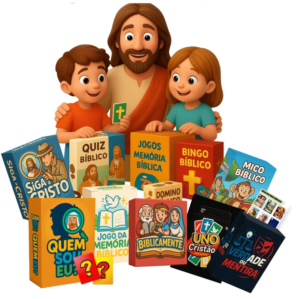 Combo com Mais de 20 jogos bíblicos que transformam o aprendizado da fé em momentos de alegria e conexão entre pais, filhos e alunos